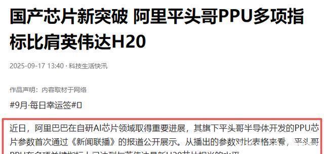 美国为了封锁中国的芯片技术,大搞技术封锁,想要卡住中国的脖子。 可是越是这样,中国人越是爆发出了让人惊叹的力量,顶着巨大的压力,中国的芯片技术不断取得突破。 如今阿里巴巴开发的平头哥PPU芯片在多项关键指标上已达到与英伟达最新H20芯片相当的水平 所以从某种角度上来说,中国还要感谢美国人赋予中国人的压力。 如果没有西方国家的压迫和封锁,中国也不可能爆发出如此强大的力量。